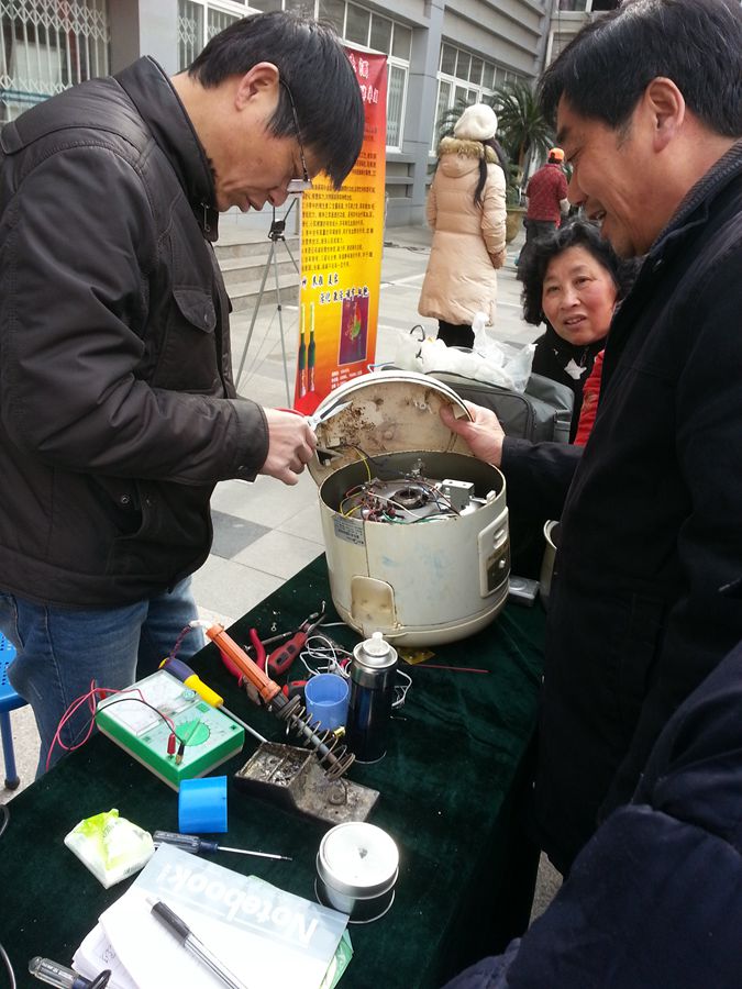 3月4日上午,区政协委员、雨中民进支部会员史成宝老师再次来到雨花街道丁墙社区,开展学雷锋精神、服务社会为市民办实事活动,他利用技术专长修复了笔记本计算机、电饭煲、收录机、数码播放器、收音机等10多个小家电,对缺少配件和现场无法修复的电饭煲和收录机还为市民留下联系地址,并请他们改天到校帮助修复,得到社区居民的一致称赞:“我们这些电器外面找不到人修,这位老师每年都来,不仅水平高,还非常认真!”