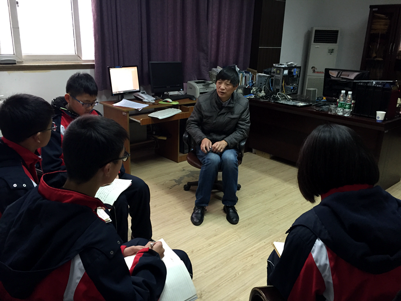 2015年1月7日下午,雨中初一小记者陶可、徐锐、陈维骏、何冲同学就区八届第五次政协会议的提案内容与同学们关心的热点问题,采访了民进会员孙经昊、区政协委员史成宝,小记者们思维缜密、目光敏锐,针对学校周边售卖食品与文具的小摊贩怎样管理、学生春、秋游时发生的意外事故、外来务工子女上学难、一些学习能力较差的同学长期面临家长的过度期盼和较大压力等社会问题与孙老师、史老师进行了充分交流,两位老师解读了“两会”的职能,并对现时的民主化推进工作进行了诠释,通过具体案例的落实对社会中总有一些人说咱们的“两会”都是摆设的不实之词进行了驳正,同学们都感到受益匪浅,希望以后还能多多开展这种形式的交流互动。