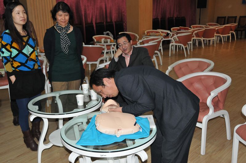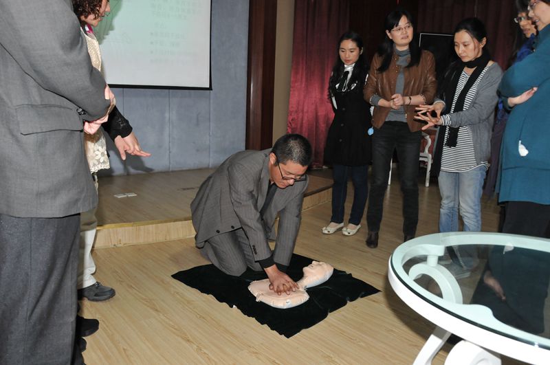 2013年10月31日下午,雨花台中学民进支部会员在校工会活动室开展支部综合活动,支部主委史成宝老师主持活动,介绍了吴贻芳的生平事迹和市委会相关的纪念活动情况。雨花台区红十字会张霞老师应邀为会员们讲授《在突发事件和自然灾害中的急救知识》,支部副主委张安忠老师带领大家学习了“庆祝民进南京市委成立60周年大会”的会议精神,观看了专题视频,全体会员重温了中国民进、江苏民进、南京民进的历史。 这是一次温馨的聚谈,民进雨中支部又增加了梅岚和周勇两名新会员,会员们相聚畅谈,为支部活动出谋划策,交流参政议政的经验体会。这又是一次欢乐的学习,在雨花台区红十字会张霞老师的指导下,史成宝老师、张荣斌老师、杨志新老师、张玲老师分别做模特,让大家实战演习心肺复苏和包扎的技术,大家在欢声笑语中学到了一些急救知识和技术。活动最后,罗萍老师德德玛一样的歌声获得了大家的热烈掌声。