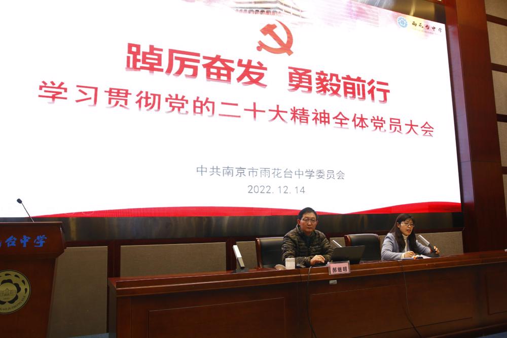 为深入学习宣传贯彻党的二十大精神,推进二十大报告中新论断、新理念、新提法入脑入心入行,12月14日下午,雨花台中学召开了学习宣传贯彻党的二十大精神全体党员大会。会议由党委刘梅副书记主持。