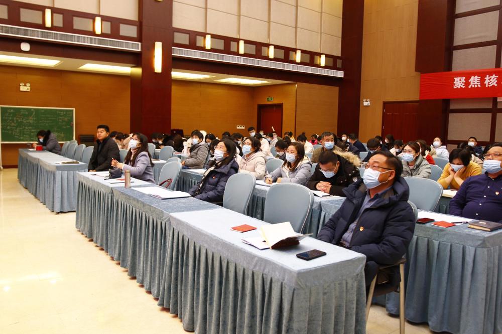 本次全体党员大会邀请了江苏省对口送教支援中西部省区党建专家、南京市委党校郝继明教授作专题讲座。会上,郝教授以《高举中国特色社会主义伟大旗帜,为全面建设社会主义现代化国家而团结奋斗——把准二十大报告的主要内容、基本特征、创新亮点》为题,深入浅出的从政治意义、理论意义、实践意义和历史意义四个方面阐明学习领会二十大重要精神的重大意义,并号召全体党员在学习贯彻党的二十大精神的过程中,要牢记总书记和党中央强调的“五个牢牢把握”以及“七个聚焦”,做到全面学习、全面把握、全面落实。此外,郝教授结合社会热点案例,从全面把握二十大报告的主要内容、准确掌握二十大报告的基本特点、深刻理解二十大报告的创新亮点等三方面深入解读了党的二十大精神。郝继明教授的讲座领学,既有理论的高度,又有实践的深度,全体党员教师仔细聆听,认真学习。