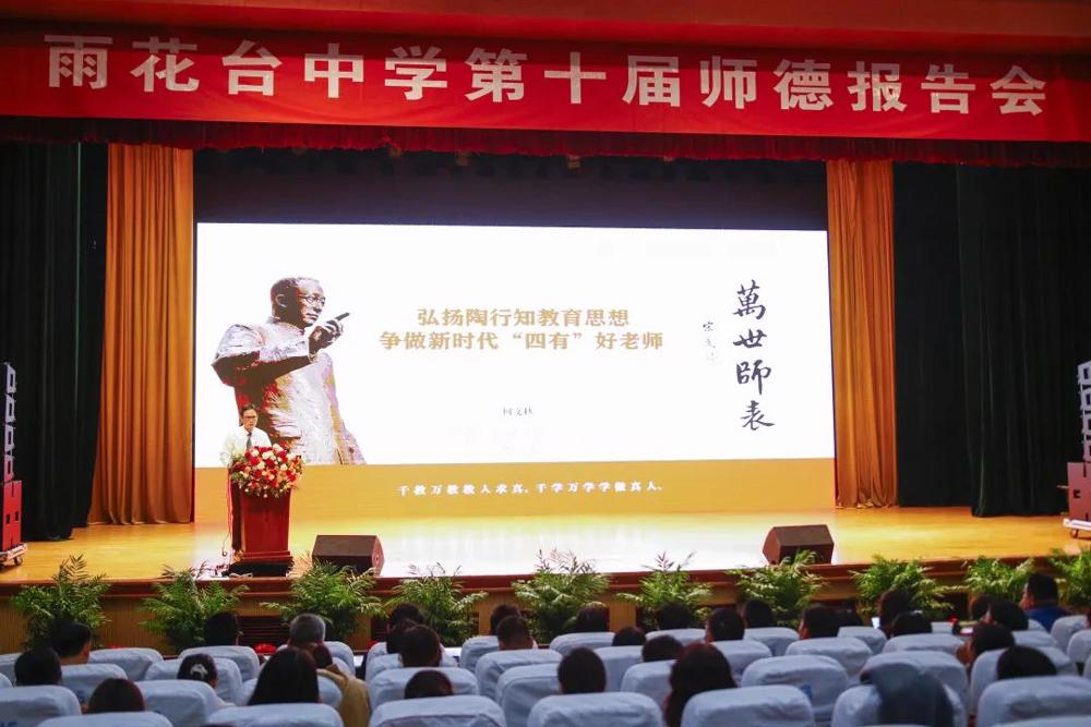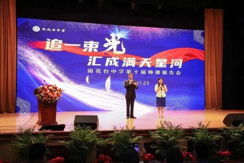 自2007年起,雨花台中学坚持不懈开展师德报告会。十届赓续,让行知精神的光芒照亮雨中,雨中人一直坚定的走在学陶、师陶、做陶的路上。11月23日下午,雨花台中学第十届师德报告会《追一束光,汇成满天星河》在学术会堂隆重举行。
