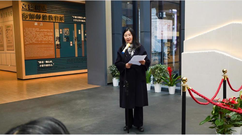 首先,由南京晓庄学院陶行知研究院党支部书记、江苏省陶行知纪念馆长何文秋致辞,何馆长代表南京晓庄学院对大家的到来表示了热烈欢迎,详细的介绍了晓庄学院和师德教育馆,并祝愿在今后的交流合作中,与雨花台中学能够携手共进,友谊长存。随后,雨花台中学党委书记周茜在致辞中表示,希望雨中与晓庄两校在共建共享的过程中赋能发展,在陶行知教育思想的实践价值研究和师德宣传、教育、实践等方面深入交流、深化合作,携手开辟师德教育的新阵地、构建师德传承的新路径、开启师德建设的新篇章。最后,何文秋馆长与周茜书记共同为“雨花台中学师德教育基地“揭牌。