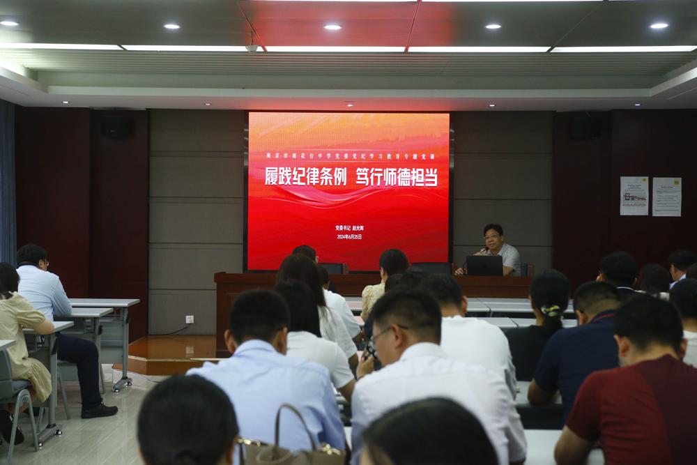 赵书记以《履践纪律条例,笃行师德担当》为题,从《中国共产党纪律处分条例》的目录框架、六大纪律及其“负面清单”等方面进行了系统讲解。他强调,要深入学习贯彻习近平总书记关于全面加强党的纪律建设的重要论述,认真学习《条例》内容,做到学纪、知纪、明纪、守纪。