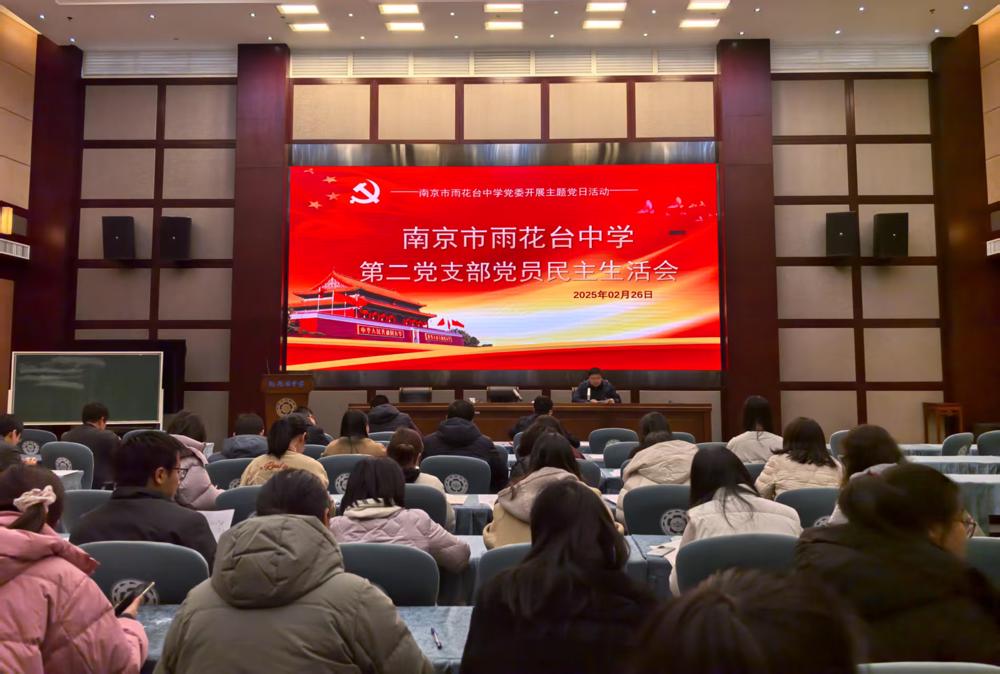 2025年2月26日,南京市雨花台中学第二党支部在国际部负一楼召开党员民主生活会。大会应到党员50人,实到党员48人,病假1人,产假1人。