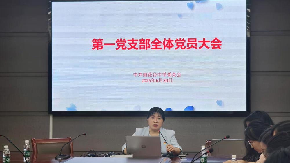 2025年6月30日,雨花台中学第一党支部召开支部全体党员大会,吸收张一娃同志为预备党员。首先,发展对象张一娃同志就个人对党的认识、入党动机等作简要汇报;接着,其入党介绍人纪明月、董芳两位同志向支部大会汇报了对发展对象的考察情况及考察意见;与会党员充分发表了意见,经第一党支部全体党员大会讨论通过,决定接收张一娃同志为预备党员。值此七一建党节来临之际,光荣加入中国共产党,张一娃老师激动的表示:永远铭记这一天,从此将牢记自己的党员身份,时刻以党员标准来严格要求自己,坚持党性,提升专业,为教育事业奋斗终身。