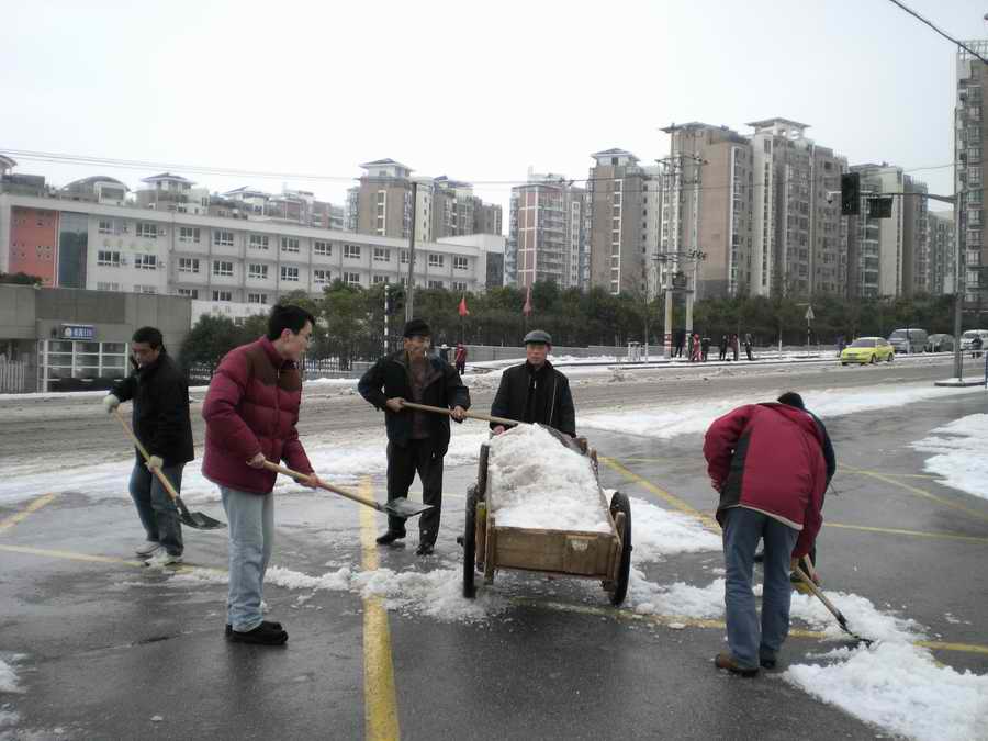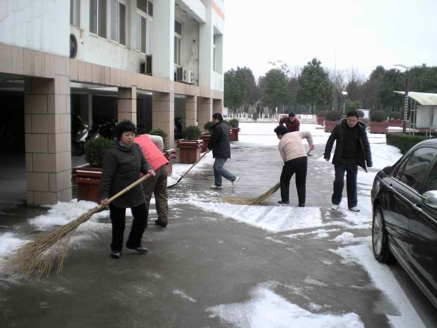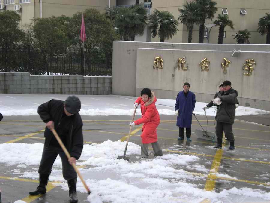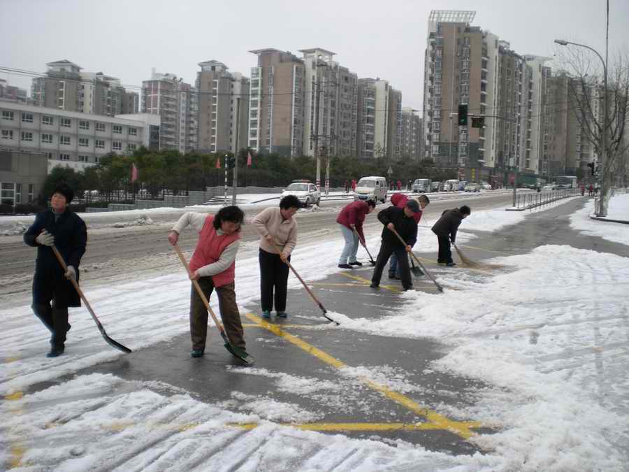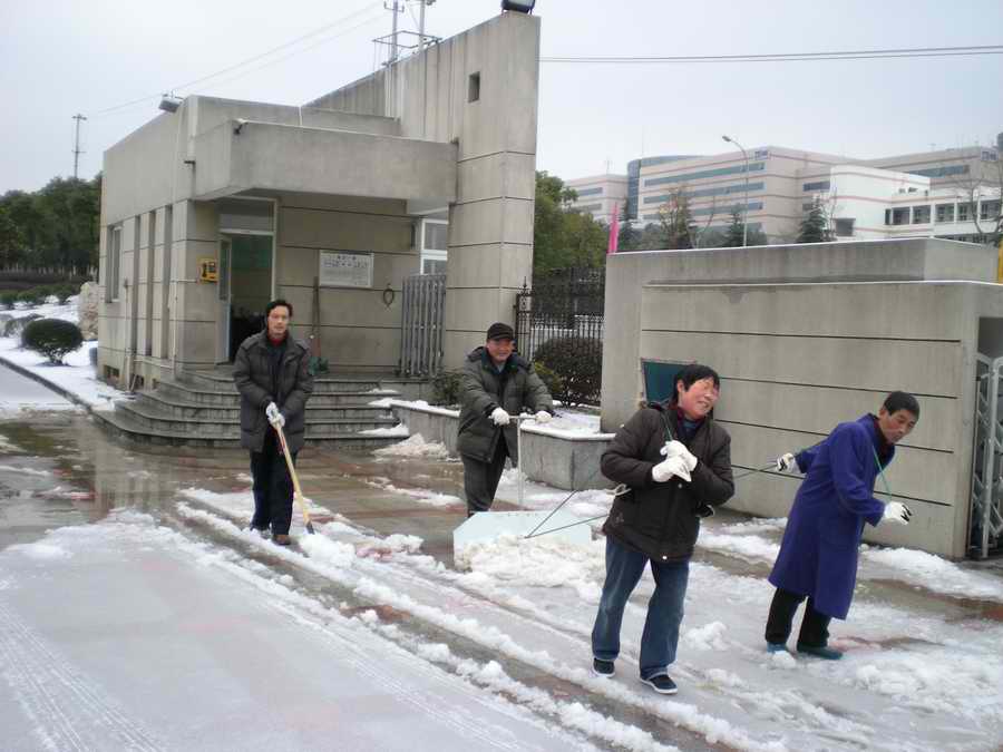 2月11日,白雪覆盖了大地,给行人和交通带来极大的不便。一大早,学校穆耕森校长、侯唯华书记和季正副校长很早赶到学校,带领学校扫雪突击队进行校内、校外扫雪工作,大家辛勤工作一直持续到中午,终于将校外道路、公共汽车站以及校内主要道路的积雪扫净,受到行人的一致赞扬。