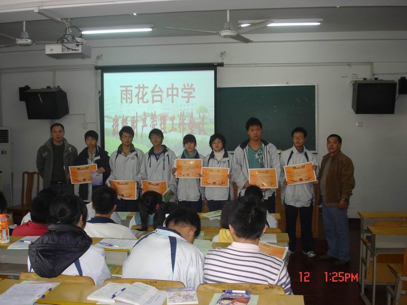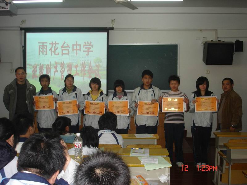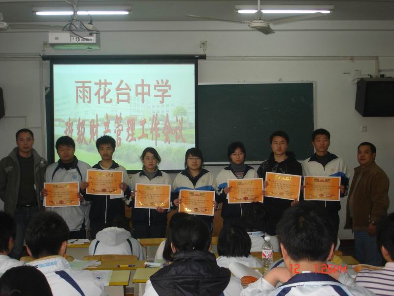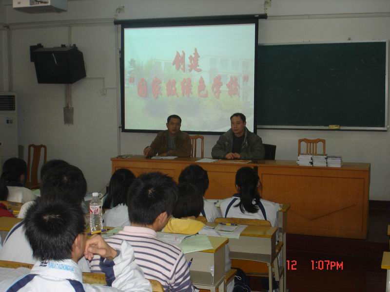 2009年2月11、12日中午12:20,学校高、初中部分别召开班级财产管理工作会议。总务处主任张洪武主持了高中部会议,学校维修班孙远明同志布置了本学期班级财产管理工作要求和介绍了财产委员工作方法,根据学校创建“国家级绿色学校”的要求,张洪武主任对全体财产委员提出了环保工作要求并对财产管理先进班级和先进个人进行了表彰。
