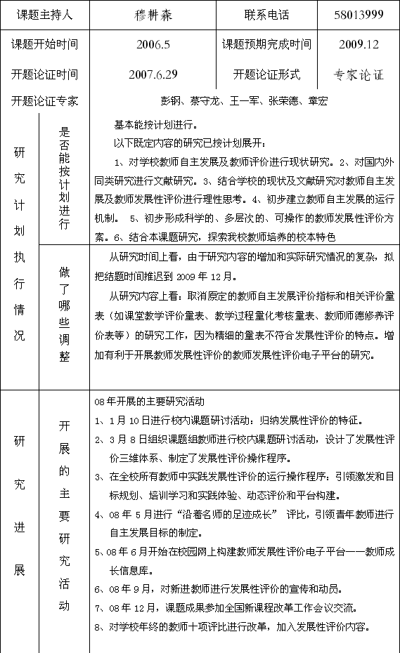 课题名称 基于教师自主发展的教师 发展性评价的校本化研究