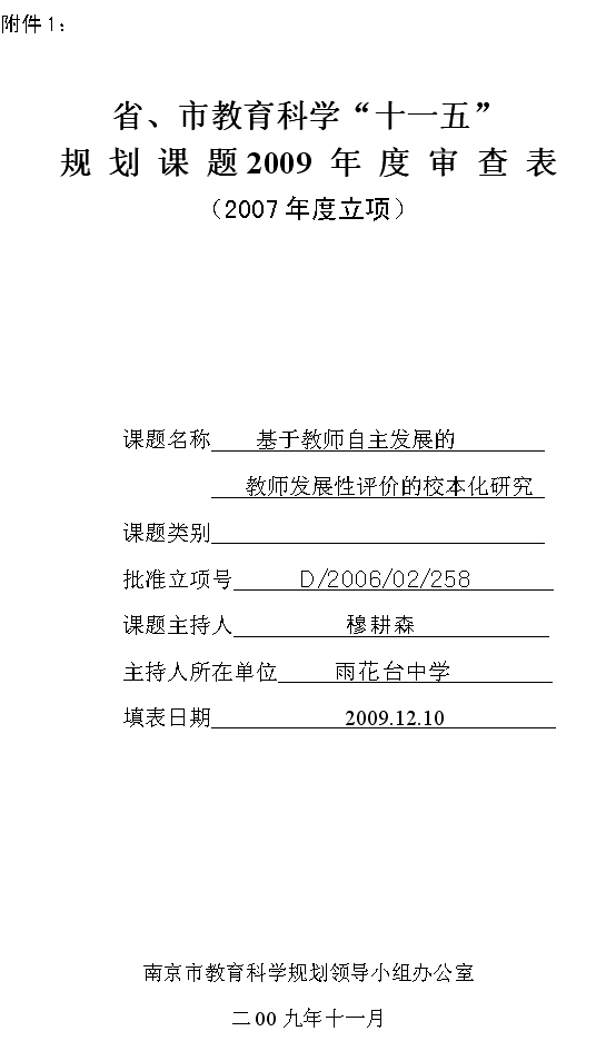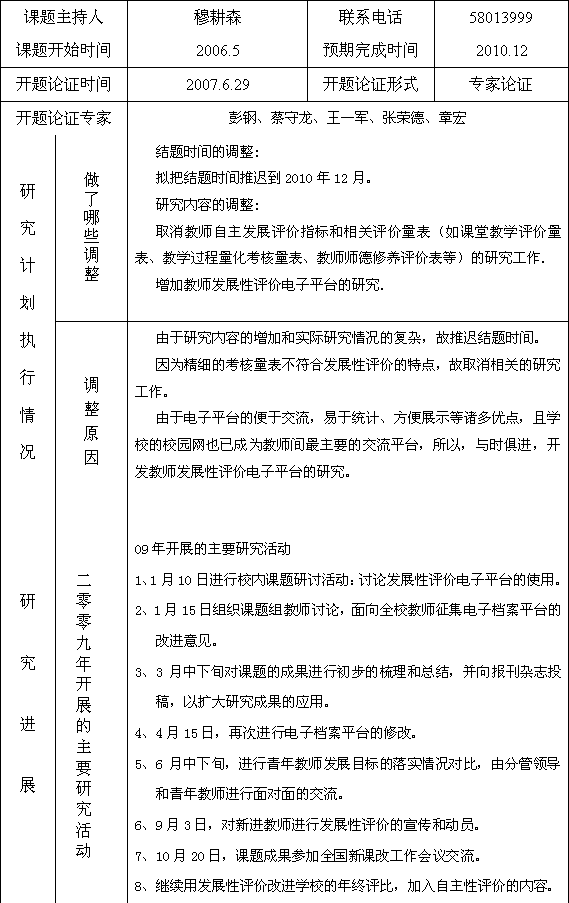 <基于教师自主发展的教师发展性评价的校本研究>2009年度审查表