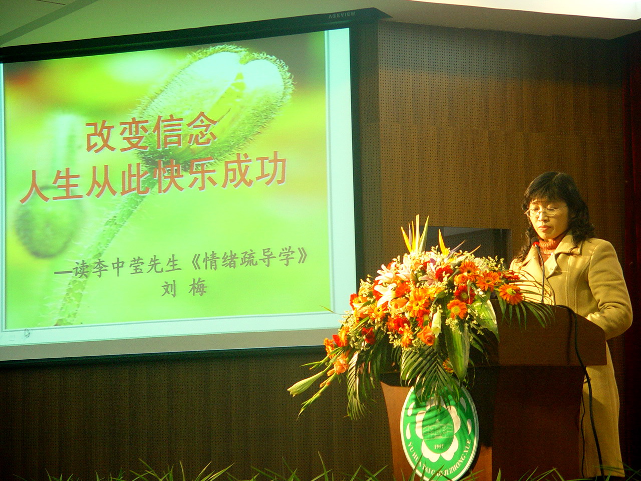 2007年1月10日下午3:40分,我校全体教职工相聚和谐厅,参加名为《回归教育本真·点化润泽生命》的第三届读书报告会。会议由教科室陈金秀副主任主持;朱淮源副校长、赵光辉主任、戴文澜老师、刘梅书记、童孝彬主任、曹晓旻老师围绕这一主题,分别从学校管理、课堂建构、细节关怀、情绪疏导、爱是宽容等待、实现生命化教育的途径等不同的角度切入,作了各具特色的精彩报告。最后,穆耕森校长有感于大家的报告,在会上做了热情洋溢的发言《生命·感激》,明确了“2007年,生命教育将是学校的主题教育,让教育与生命同行将成为学校管理的永恒追求”这一管理理念,表达了“为了每位教师的生活幸福和生命质量的提升,更为了每位教师生命价值的圆满实现,我愿与大家携手同行”这一温暧每位教师的心声。