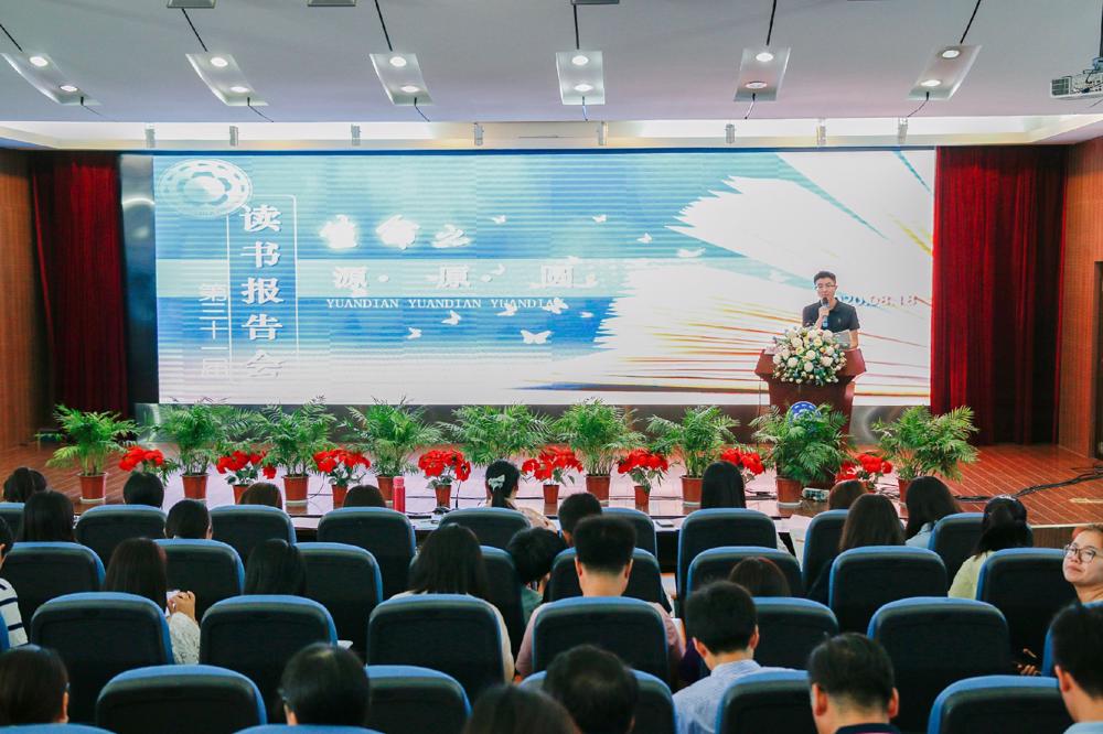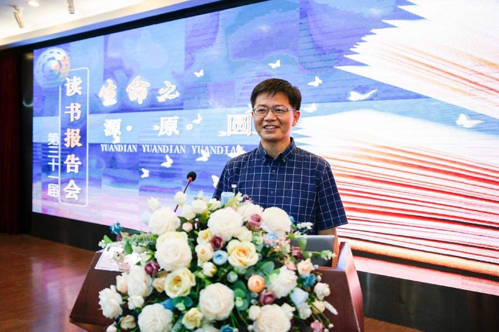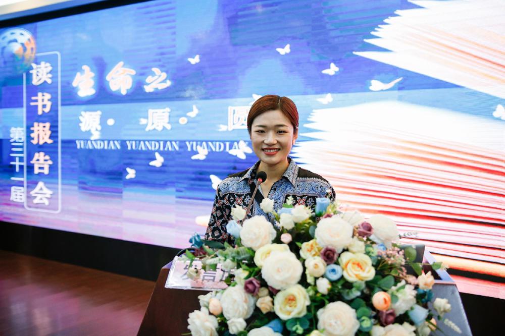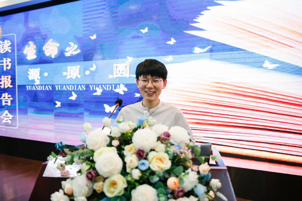 主持人纪明月老师阐释本届读书报告会的主题“源点·原点·圆点”时说:自新冠疫情以来,我们经历了生命的分离与悲痛,但同时也看到了坚守职责、挺然逆行和同心团结。恰恰就是这样一场国家和人民高度团结的抗疫行动,让我们看到了个体在生命面前所展现出的生存、生长和生活的不同,更体会到个体生命所包含的人世间一切最极致的体验,在这其中,有生命源起的奥秘,谓之“源点”;有生命本真的模样,谓之“原点”;有生命圆通的状态,谓之“圆点”。