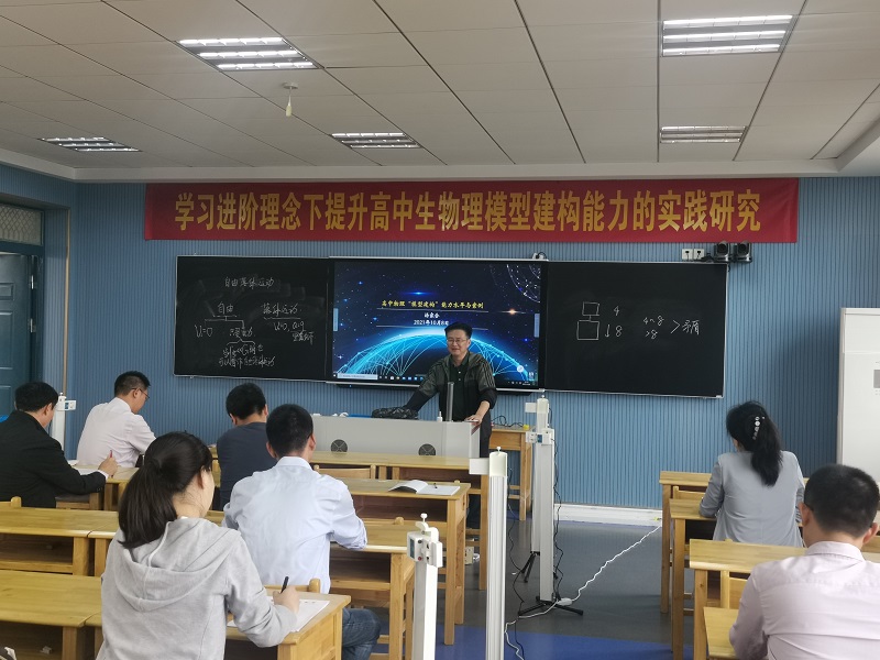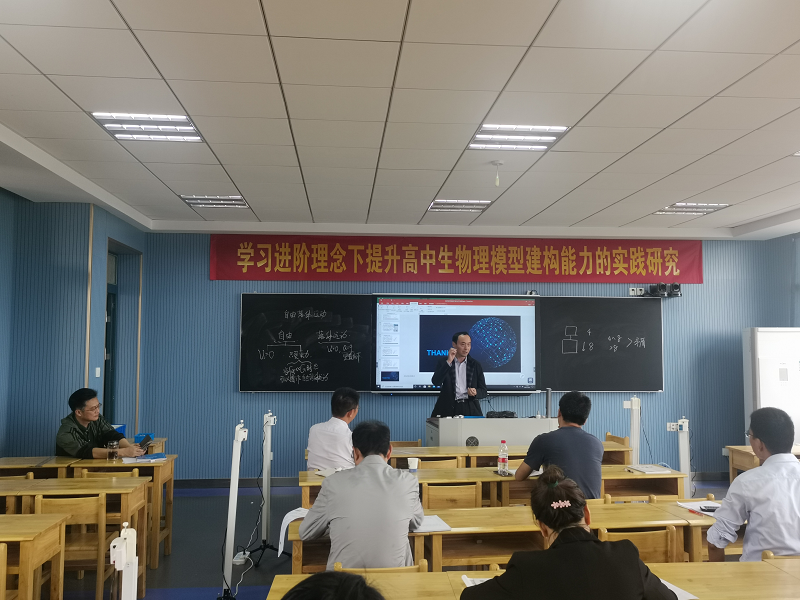 最后,汤家合副校长作了题为《高中物理“模型建构”能力水平与案例》专题讲座。汤特从高中物理学科核心素养、模型和建模能力的水平、模型建构能力水平案例三方面高位引领,重点分析新高考命题方向及应对策略,与会老师获益良多。
