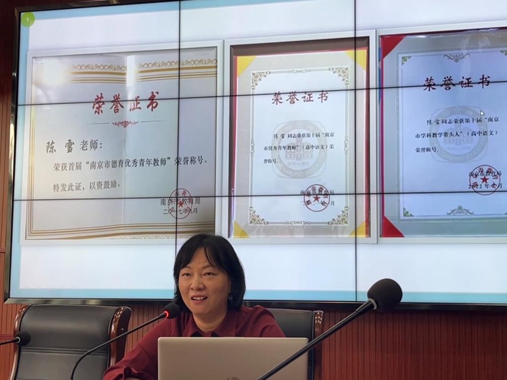 陈雪老师结合自身专业发展,以 “仰望星空,脚踏实地”为题,从“多一点梦想、多一点韧劲、多一点务实”三个方面跟我们分享了她是如何从一名普通教师成长为南京市学科带头人。成功没有捷径,唯有脚踏实地,勇往直前。