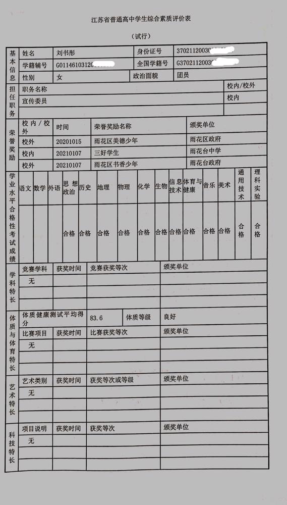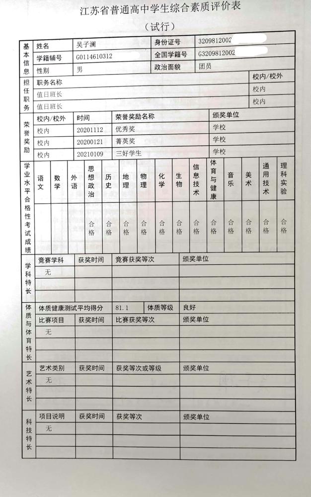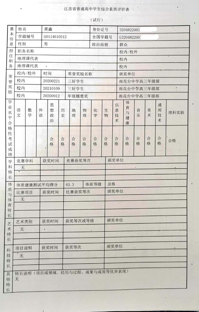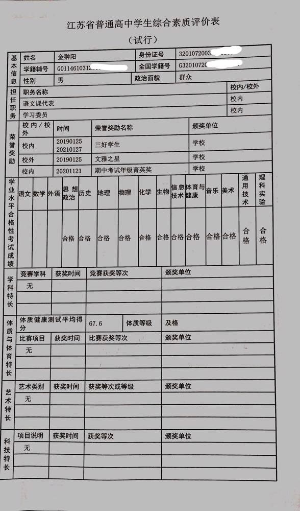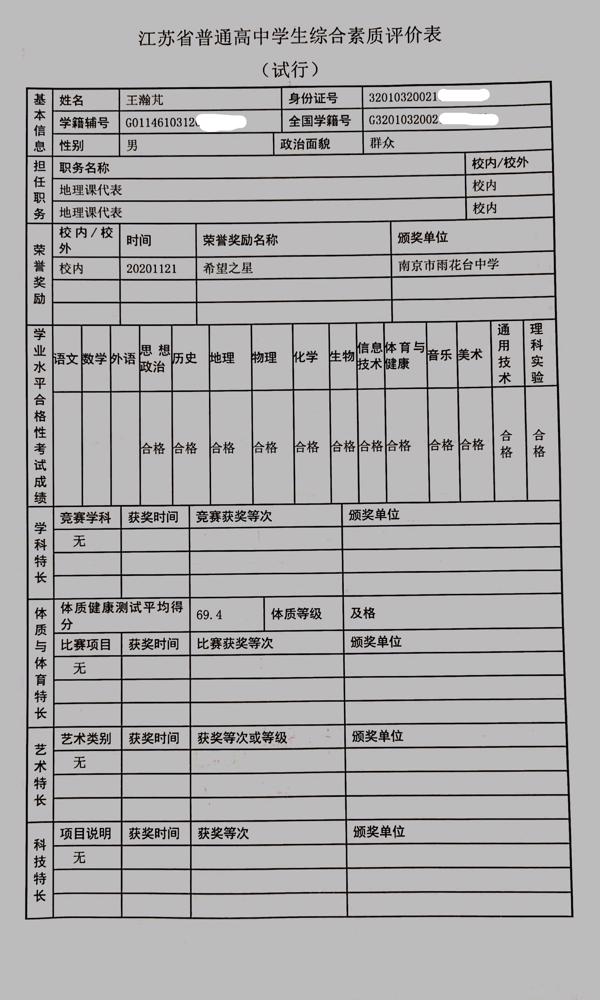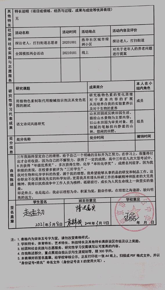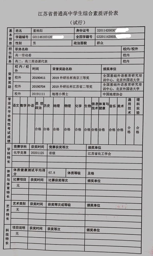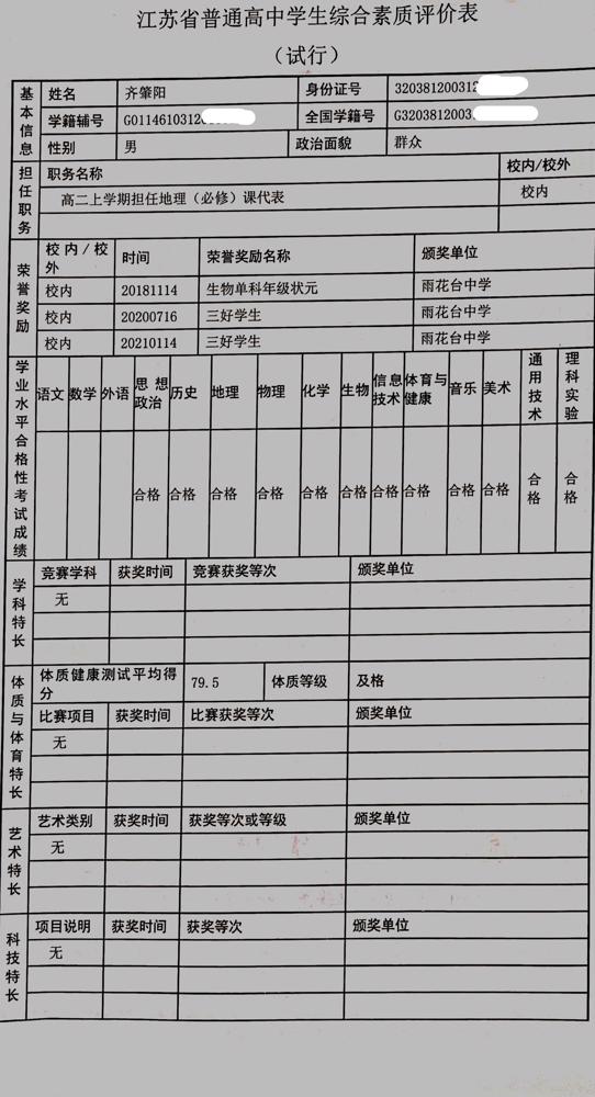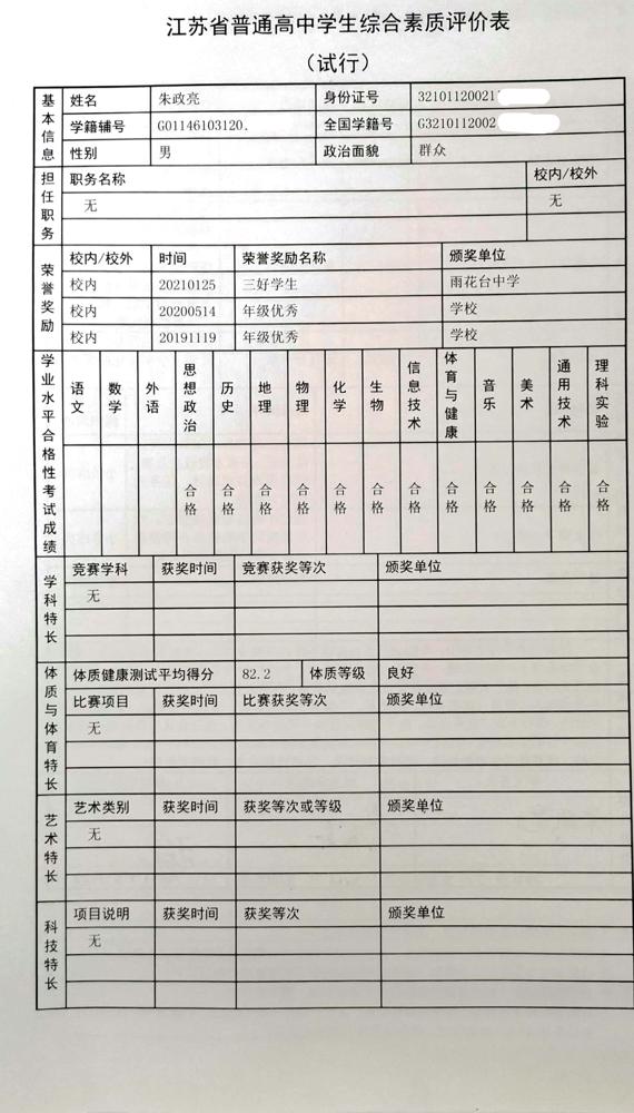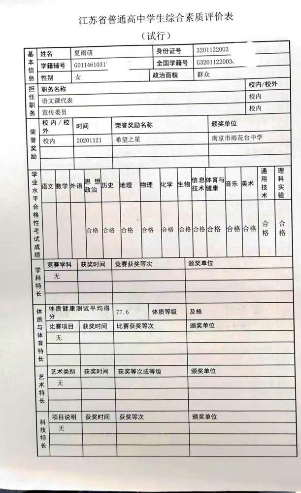 2021年雨花台中学拟报考高校“强基计划”的“综合素质评价”内容已经经过审核,现公示如下。公示时间2021年5月19日-25日,如有异议,请向课程教学处张公法主任反映。具体考生名单及“综合素质评价表”公示如下: