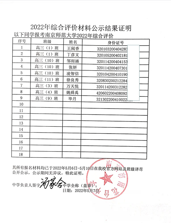 2022年雨花台中学报考南京师范大学综合素质评价公示结果1