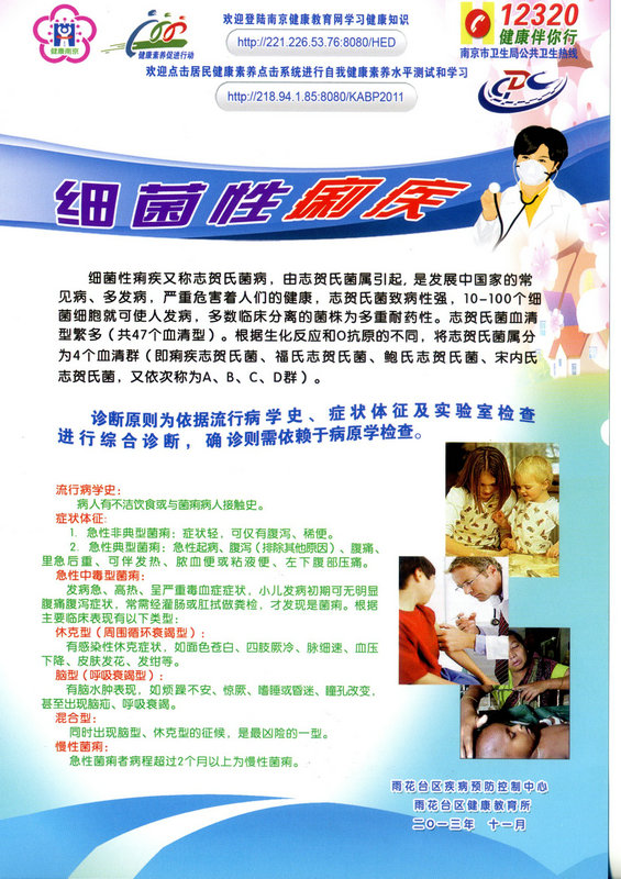 当前正值夏秋季节,是细菌性痢疾等肠道传染病流行的高发时期。细菌性痢疾简称菌痢,是痢疾杆菌引起的肠道传染病。病情有轻有重,分急性和慢性两种,其传染源包括患者和带菌者。患者中以急性非典型菌痢与慢性隐匿型菌痢为重要传染源。细菌性痢疾主要通过食物、水、粪便、污染的食品、玩具、用具而传播。人群对痢疾杆菌普遍易感。潜伏期为数小时至7天,平均1—3天。主要临床表现为:腹痛、腹泻、里急后重、粘液脓血便,可伴有发热及全身中毒症状。严重者可出现感染性休克(或)中毒性脑病。