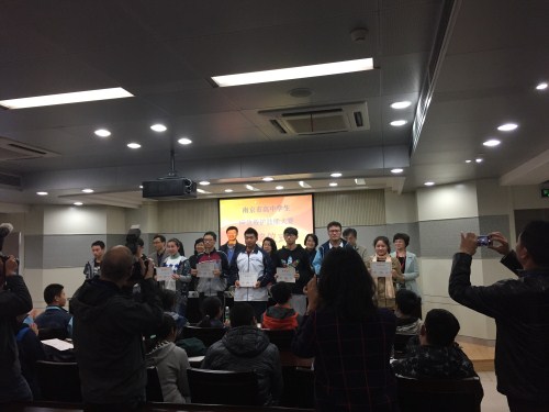 喜报!2016年11月19日,星期六,我校高一年级三位同学参加了在南京市教育局、南京市卫计委、南京市红十字会联合举办的《高中生应急救护技能大赛》中,谢忠壤、吴佳文两位同学获得二等奖,朱晓妍同学获得优秀奖。我校获得团体三等奖。