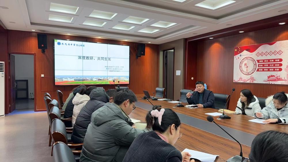 2024年2月20日中午岱山校区召开了“深度教研、共同生长”为主题的教研组长备课组长会。岱山校区执行校长张公法、校党委副书记刘梅、岱山校区课程教学处杨阳主任、郑柏浪副主任及全体教研组长备课组长参加会议。会议由杨阳主任主持。