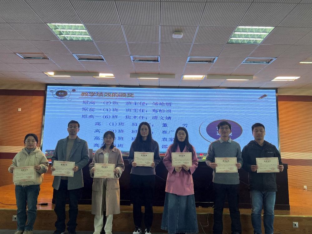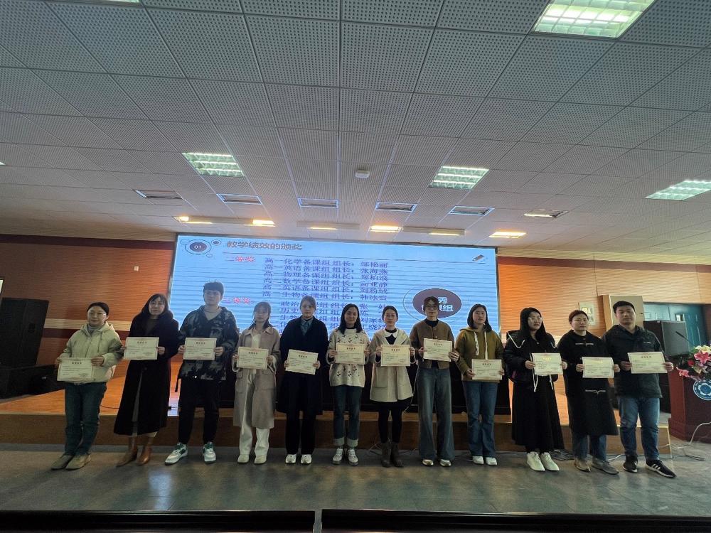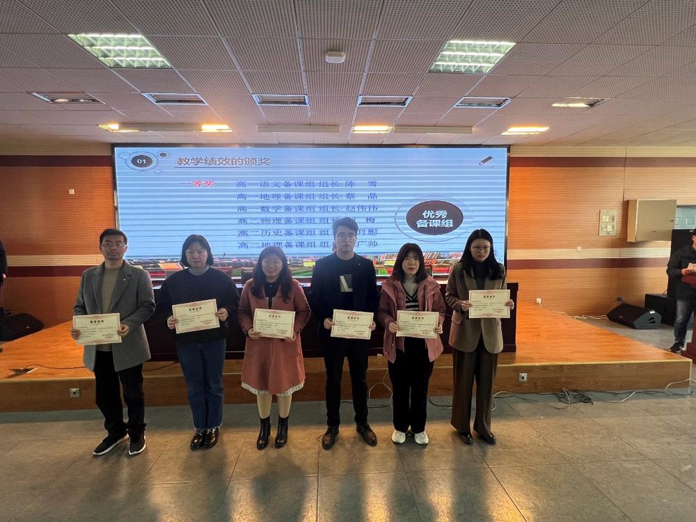 首先,由郑柏浪副主任宣读2023-2024年度第一学期基础年级绩效表彰决定,执行校长张公法分别为“绩效优秀备课组”和“绩效优秀班级”教师代表颁奖并合影。