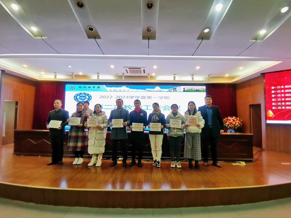 会议由课程教学处唐保东副主任主持,会议第一项是课程教学处胡景月主任宣读期中考试基础年级教学绩效表彰决定,由刘进全副校长为获奖备课组和获奖班级班主任颁发奖状。
