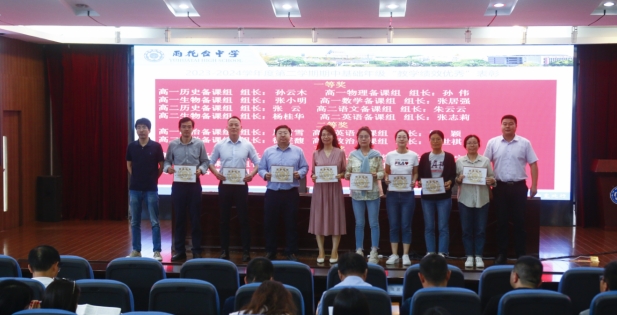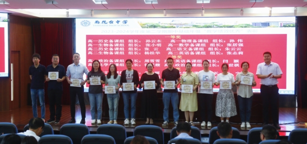 首先,由胡景月主任宣读2023-2024年度第二学期期中考试基础年级绩效表彰决定,刘进全副校长分别为“绩效优秀备课组”和“绩效优秀班级”教师代表颁奖并合影。