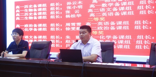 其次,刘进全副校长用一组数据从教研组建设,备课组活动,大数据平台的使用,各学科竞赛以及特长生招生五个方面对开学以来的工作进行了回顾总结,特别是我校语文、数学、物理、生物教研组完成了南京市教研组答辩;此外,本学期备课组集体教研呈现新样态并富有实效,我校在生物奥赛,化学奥赛、数学奥赛与物理奥赛进行了校内选拔,物理化学实验技能网络比赛有53人入围参加省决赛,特长生的招生再创佳绩。与此同时,对后期基础年级期末考试以及高考和招生工作进行了布置。