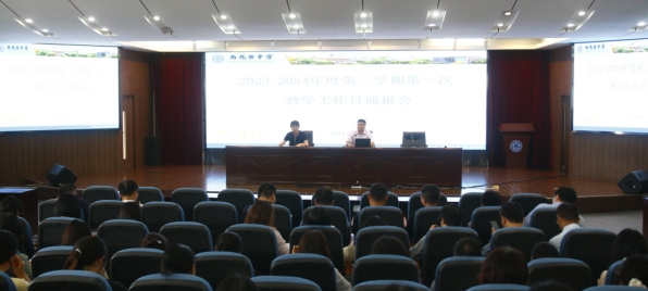 5月22日,我校在和谐厅隆重召开2023-2024年度第二学期教学工作月通报会。本次会议由课程处胡景月主任主持,全体教师参加会议。