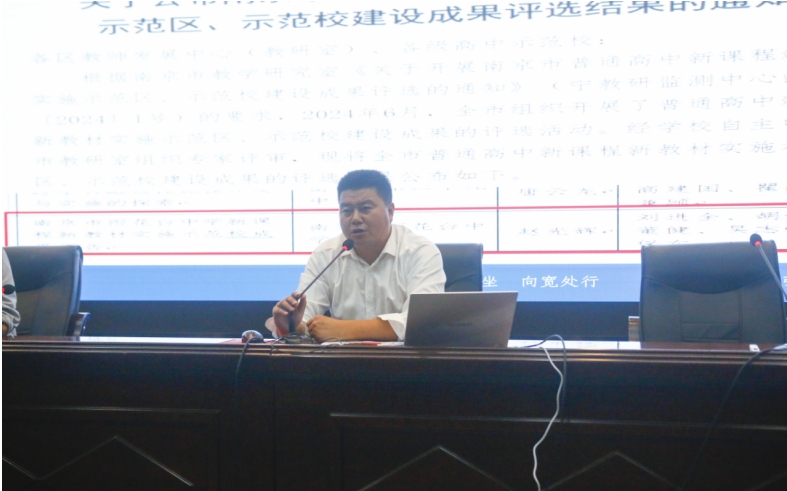 最后,刘进全副校长通报了我校获评双新示范校荣誉称号;同时,我校2024届高三再次获得南京市高考教学质量突出贡献奖,并囊括南京市教育局颁发的所有八项大奖,此外,强调要推进教育数字化,描绘了新时期教育数字化的“雨中探索”,从智学网信息化,新教育大数据,教育教学研究,信息技术融合等方面进行实践探索,给出了雨花台中学“笃行课堂”教学范式的思考,努力打造出教学评一体化的课堂,智融教学,以评促教,使雨中的教育教学质量迈向更高台阶。