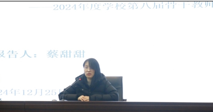 教师发展处马跃美主任对第八届骨干教师示范课进行了总结和回顾,强调了示范课的重要性,并介绍了骨干教师的概况、活动组织和精彩课堂。马主任还介绍了示范课的听课情况,并对各学科的听课情况进行反馈。她指出,听课统计不能完全代表真实情况,它受考试、市教研活动、课时冲突和岱山本部两校区同时开课等因素影响。马主任强调了教师参与示范课的重要性,并罗列了开课过程中的繁琐事宜和所有人员的努力,希望老师们后期能给予公开课更多的支持和参与。随后,蔡甜甜老师分享了《全科示范教研浓 学评结合共成长》——2024年度学校第八届骨干教师示范课的经验。