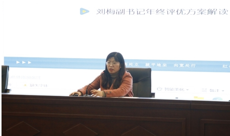 最后,刘梅书记对年底评优方案进行了详细解读,强调了评优工作的重要性,指出评优工作是衡量教师工作成效的尺度,是学校高质量发展的动力,也是雨花台中学集体价值的风向标。刘书记还详细解读了年度评优的具体奖项,从奖项类别到评优说明,提醒老师们关注时间节点,强调评优部门需制定详细的评选细则,确保评优的公平、公正、公开,充分发挥评优的激励作用。