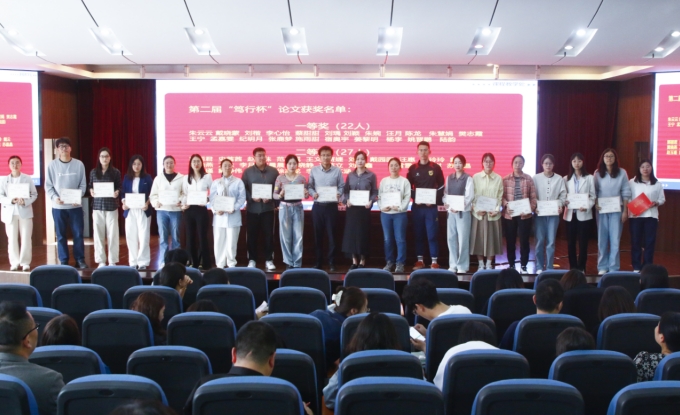 胡主任宣读了第二届“笃行杯”论文获奖表彰决定,汤家合副校长为获奖教师颁奖并合影。
