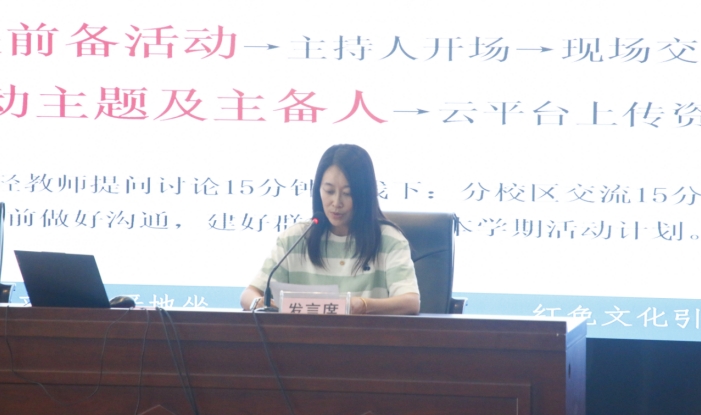 其次,李发志主任对开学以来的教学工作进行了反馈,从开学教案检查、开学公开课开课、公开课教师反馈、云平台备课组活动上传以及两部联合教研情况等教学常规方面进行反馈和总结。本次开学公开课,看到了部分学科打破传统课堂的新探索和尝试,特别是青年教师将信息化融入课堂教学,备课组教研呈现新样态,与岱山校区联合备课组活动中通过线上直播+线下教研的沟通方式实现资源共享和互通有无。
