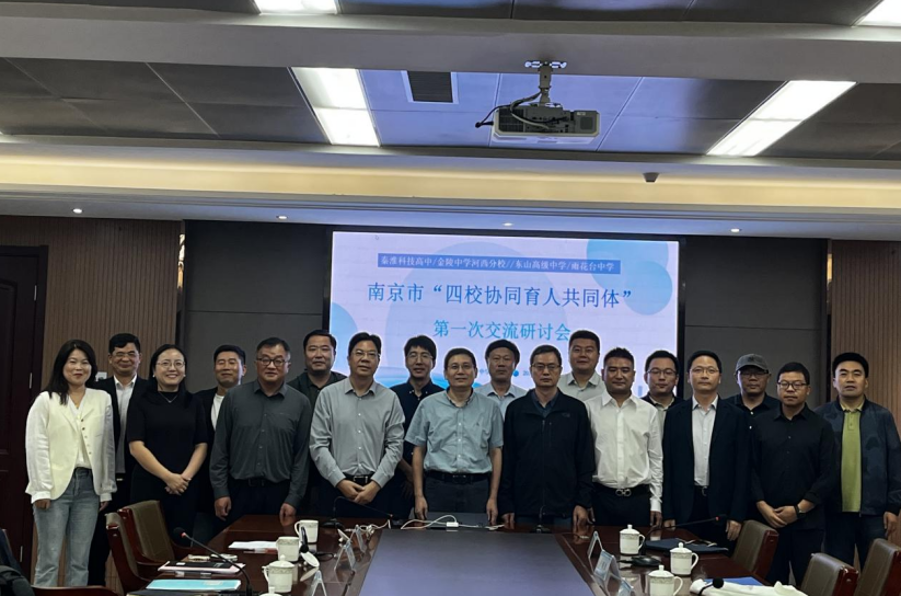 2025 年 10 月 14 日,南京市 “四校协同育人共同体” 第一次会议在雨花台中学国际部第二会议室召开。市教研室书记孙旭东、主任龙艳文,以及共同体成员校 —— 东山高级中学、金陵中学河西分校、秦淮科技高中、雨花台中学各分管校长和高一年级分管主任共同参会,会议由雨花台中学副校长刘进全主持。