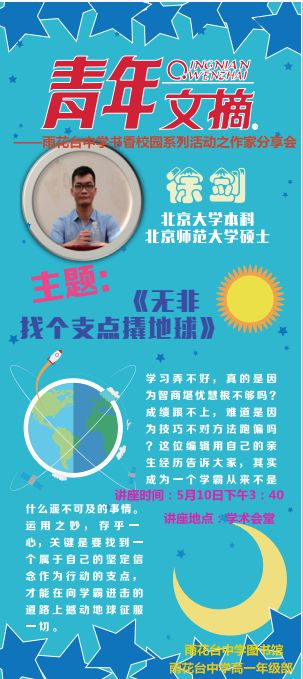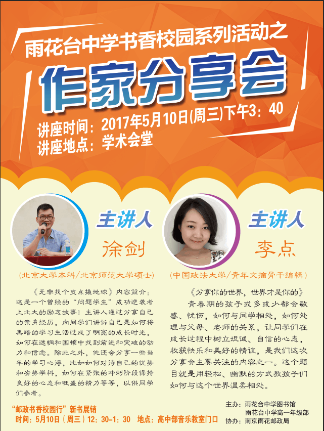 雨花台中学书香校园系列活动之《青年文摘》作家分享会预告