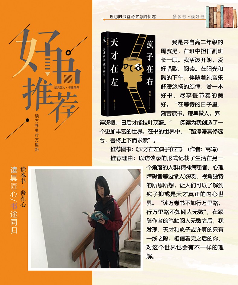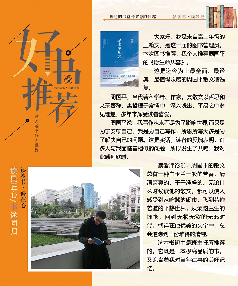 达志宜有真精神 行远还须勤读书——雨花台中学第四届读书节好书推荐展