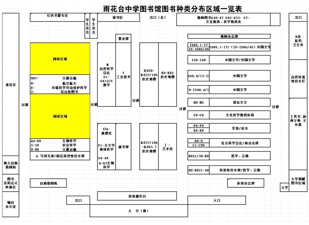 【读者服务】雨花台中学图书馆图书种类分布区域一览表