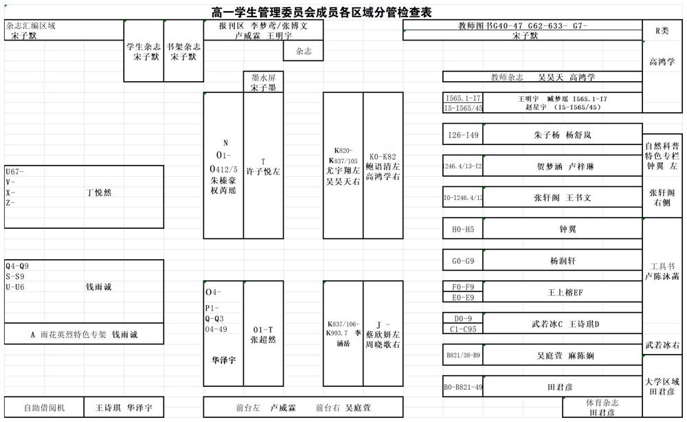 【读者服务】雨花台中学图书馆高一学生管理委员会成员各区域分管一览表