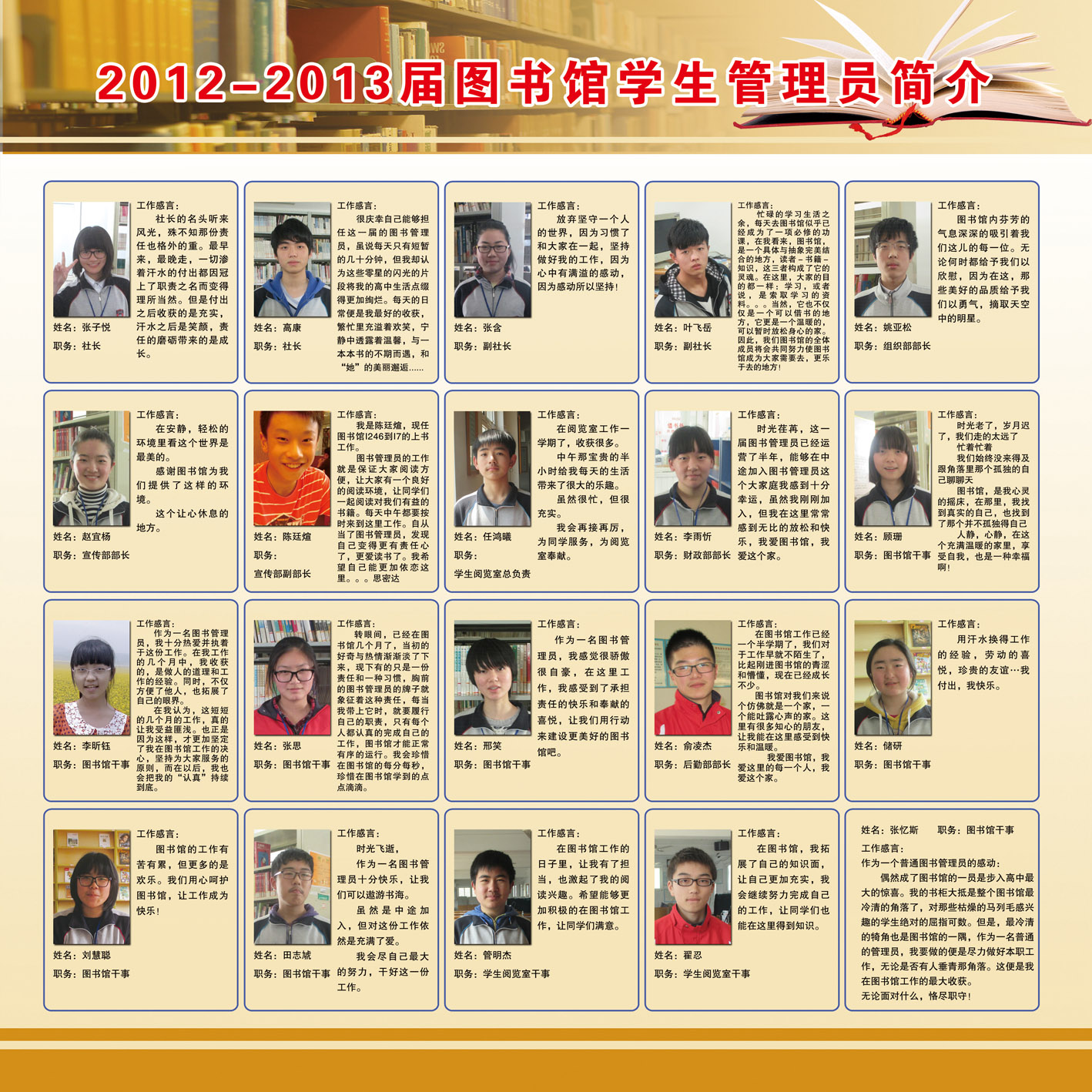 2012-2013届图书馆学生管理员简介宣传海报