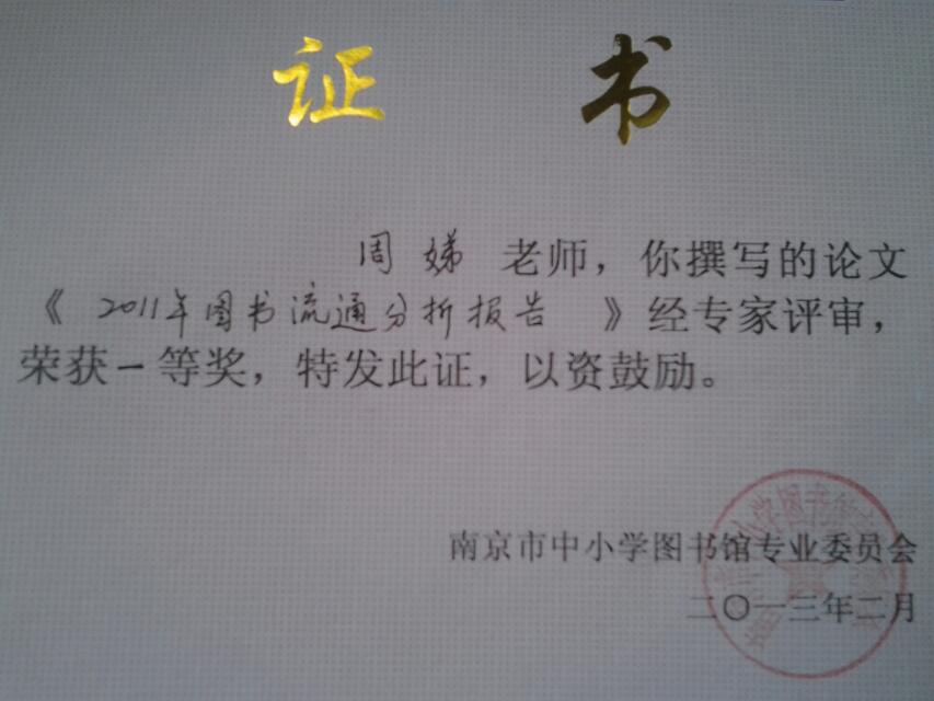 关于公布2012年度南京市中小学图书馆工作论文评选结果的通知