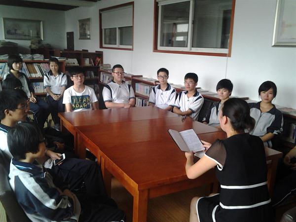 2013年9月4日中午,图书馆负责人周娣老师在教师书吧召开了高二年级学生图书管理员会议。会上,周老师布置了图书馆近期主要工作,对上学年管理员的工作表现进行了总结反馈并对优秀图书管理员进行了表彰,进一步强调了管理员的职责,每天要求“带证上岗”微笑服务,提高自身素养,继续发扬“不怕苦、不怕累、全心全意为读者服务”的精神。