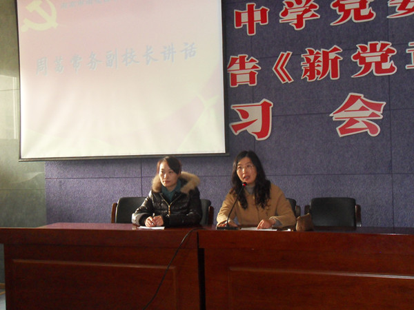 11月26日中午12:30, 我校第十八期业余党校培训班开班典礼在音乐教室举行。仪式由团委副书记刘蓓蓓主持。周茜常务副校长也出席了开班仪式并发表了讲话,她对全体学员提出了殷切希望和要求,她鼓励全体学员珍惜学习机会,从思想素质和能力水平上提升自己,把在业余党校的学习作为人生成长进步的一个新的起点,周校长以现实中事例为突破点,最大限度地激发学员们的上进心。第二党支部优秀党员贺昭生老师为学员们上了第一堂课《中国共产党党史》。贺老师让学员们深刻体会到了中国历史曲折的发展历程,让学员们领会了没有共产党就没有新中国的道理。学员们兴趣颇高,课堂气氛活跃。