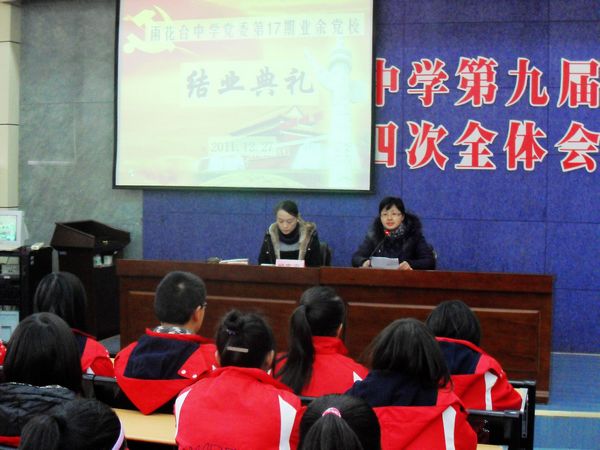 12月27日周二中午12点30分,雨花台中学党委第17期业余党校结业典礼在音乐教室隆重举行。
