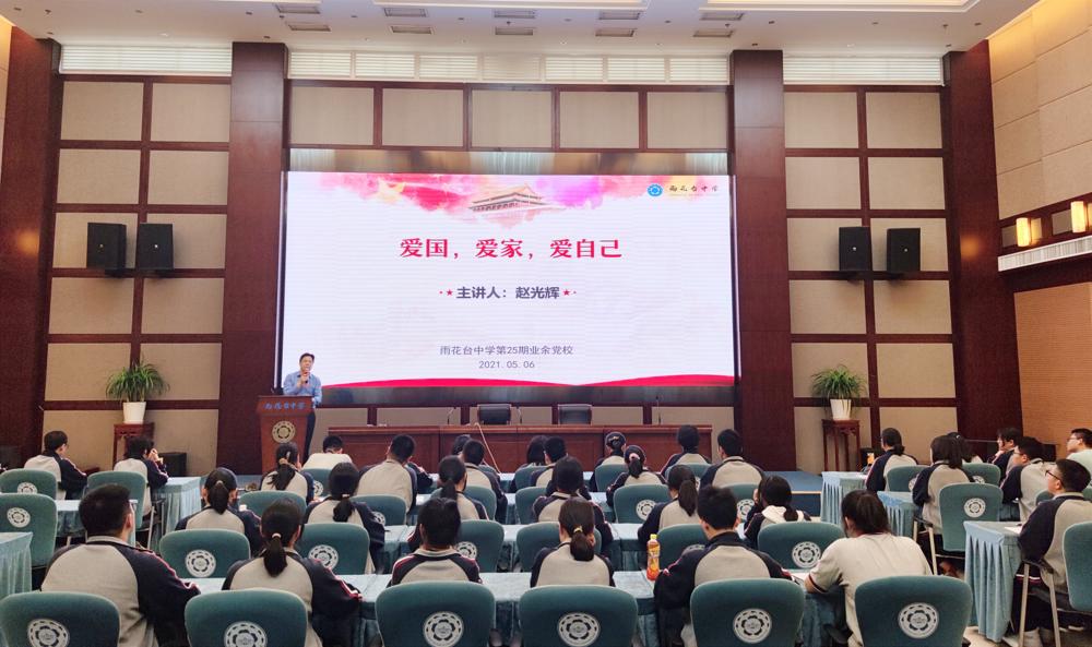 立己立身,心有所信。雨花台中学校长、党委副书记赵光辉开设党课《爱国,爱家,爱自己》,雨花台中学常务副校长、党委书记周茜开设党课《青年学生的责任担当》,雨花台中学党委副书记刘梅开设党课《坚持党员标准,履行党员权利和义务》,雨花台中学团委副书记余跃开设党课《如何写入党申请书》,立足雨中学子的青年身份,教导学员们努力奋斗,不断上进,做有理想、有道德、有文化、有纪律的新时代学子。