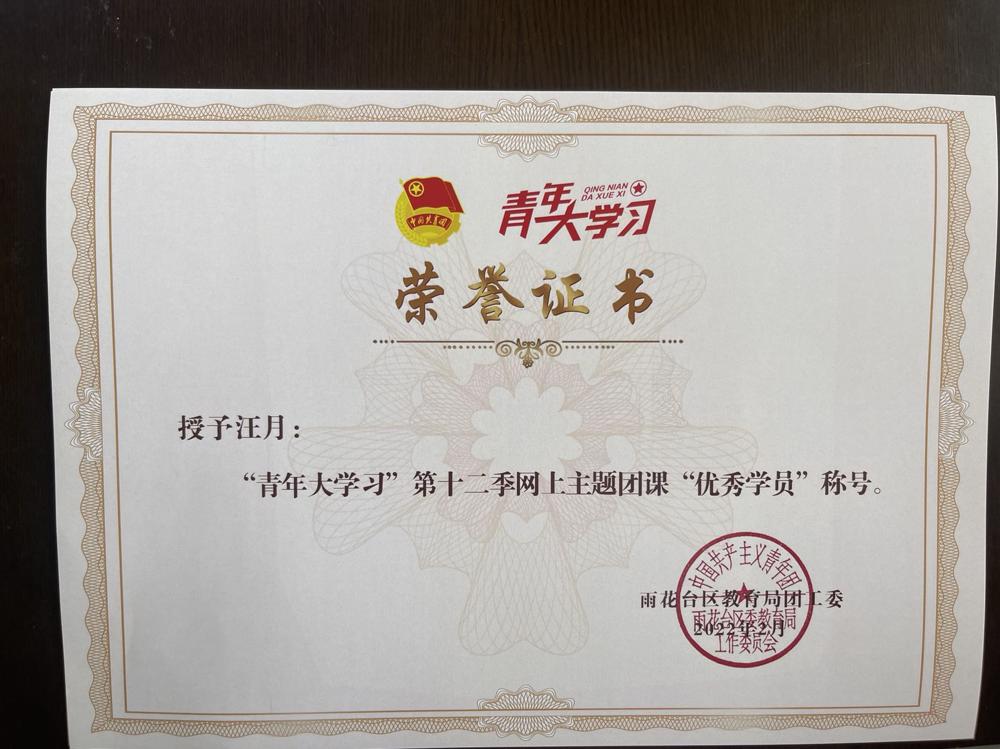【喜报】雨花台中学岱山校区陈宇、胡玄一、夏芷玲三位老师荣获“青年大学习”第十二季网上主题团课“优秀学员”称号