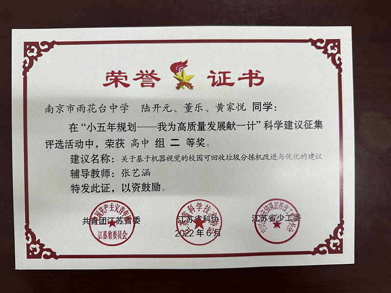 【喜报】陆开元、董乐、黄家悦同学在“小五年规划——我为高质量发展献一计”科学建议征集评选活动中荣获高中组二等奖