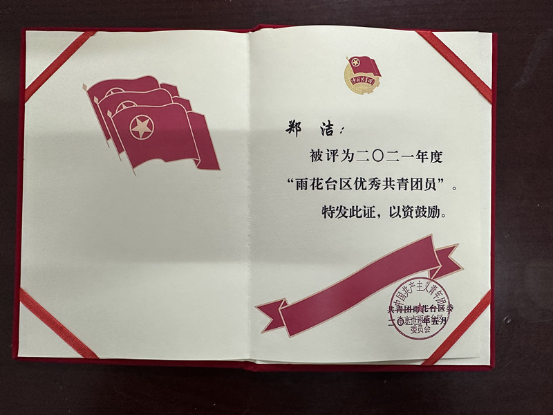 【喜报】郑洁被评为2021年度“雨花台区优秀共青团员”