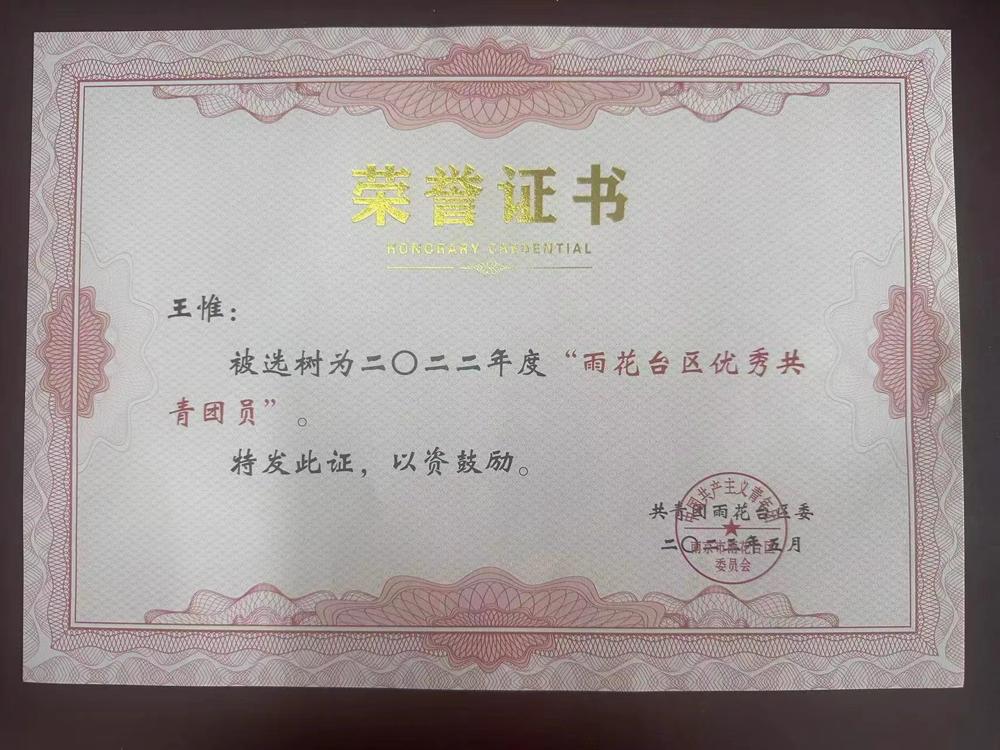 【喜报】我校王惟同学被选树为2022年度“雨花台区优秀共青团员”