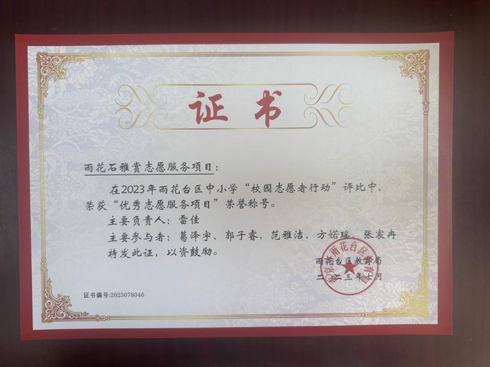 【喜报】我校雨花石雅赏社荣获区“优秀志愿服务项目”称号