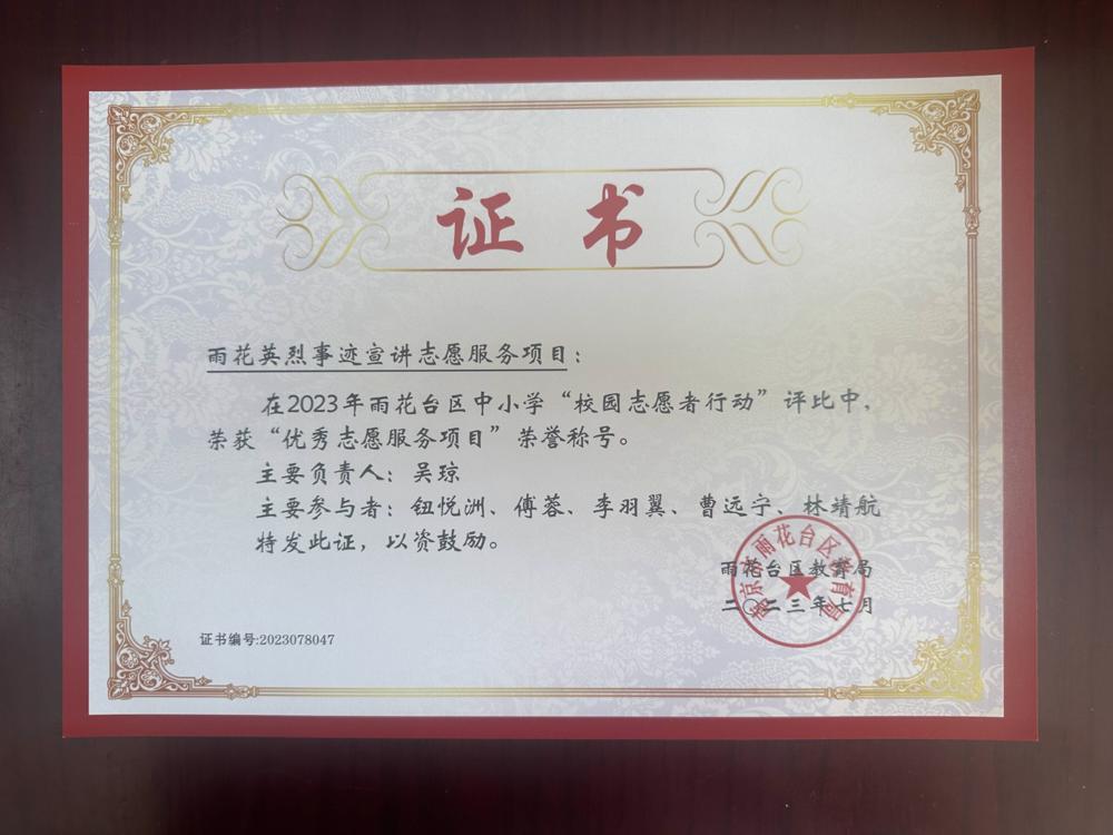 【喜报】我校雨花英烈事迹宣讲团荣获区“优秀志愿服务项目”称号
